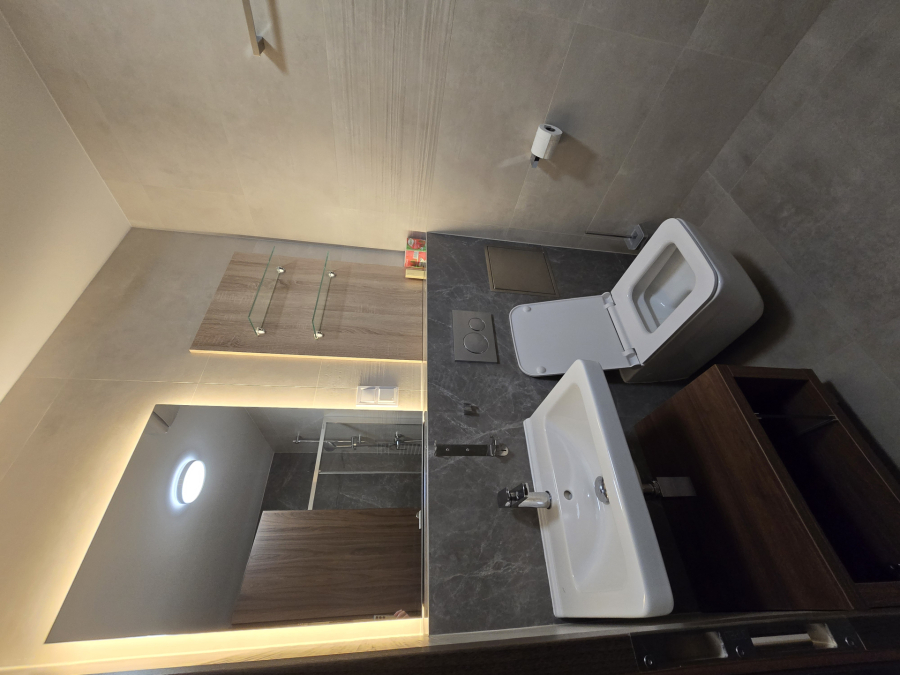 - Obývačka s rozkladacím gaučom, ktorý slúži ako prístelka (matrac s rozlohou: 160 cm x 190cm)
