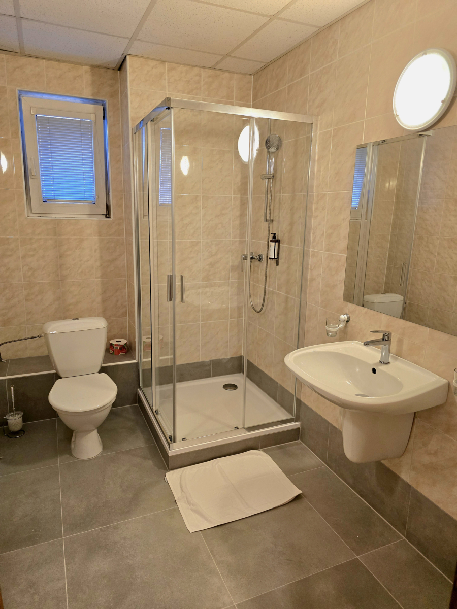 Dvojlôžková izba s manželskou posteľou sa nachádza na 1. poschodí (bez výťahu). Je vybavená šatníkovou skriňou na uskladnenie vecí, stoličkami a TV pre večerný oddych. Nájdete tu aj sušiak na prádlo a dostatok županov a uterákov pre príjemný pobyt. Kúpeľňa je vybavená sprchovým kútom.